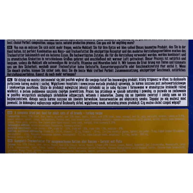| Pet food flavor | Turkey |