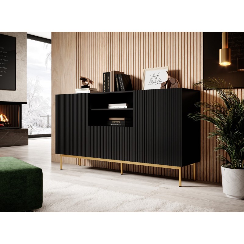 PAFOS chest of drawers on golden steel frame 150x40x90 cm matte black