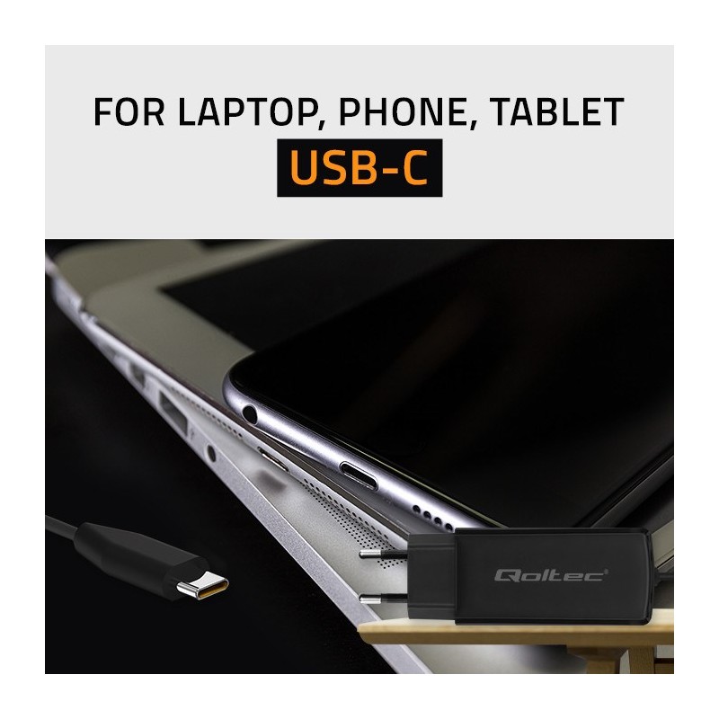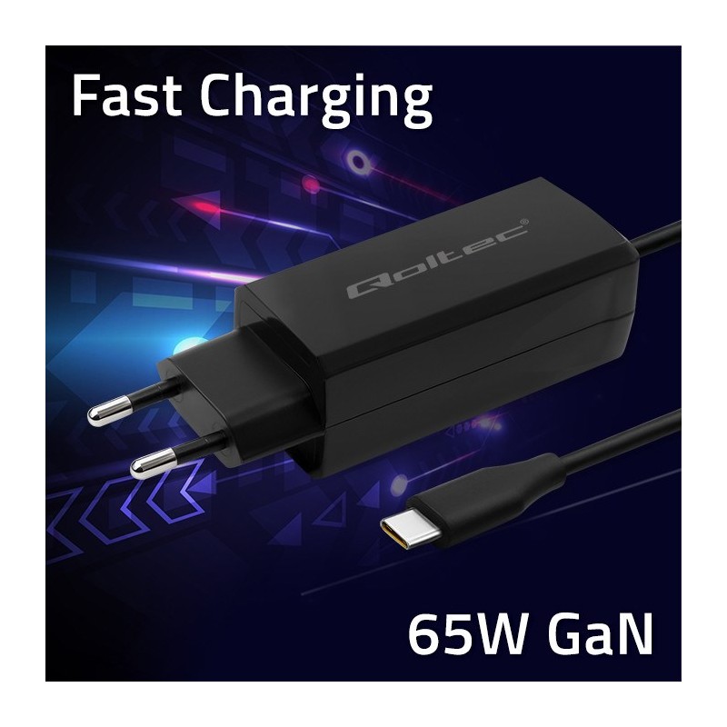 Qoltec 52419 65W GaN Super Fast Charger| 5-20V | 3-3.25A | USB-C 3.1
