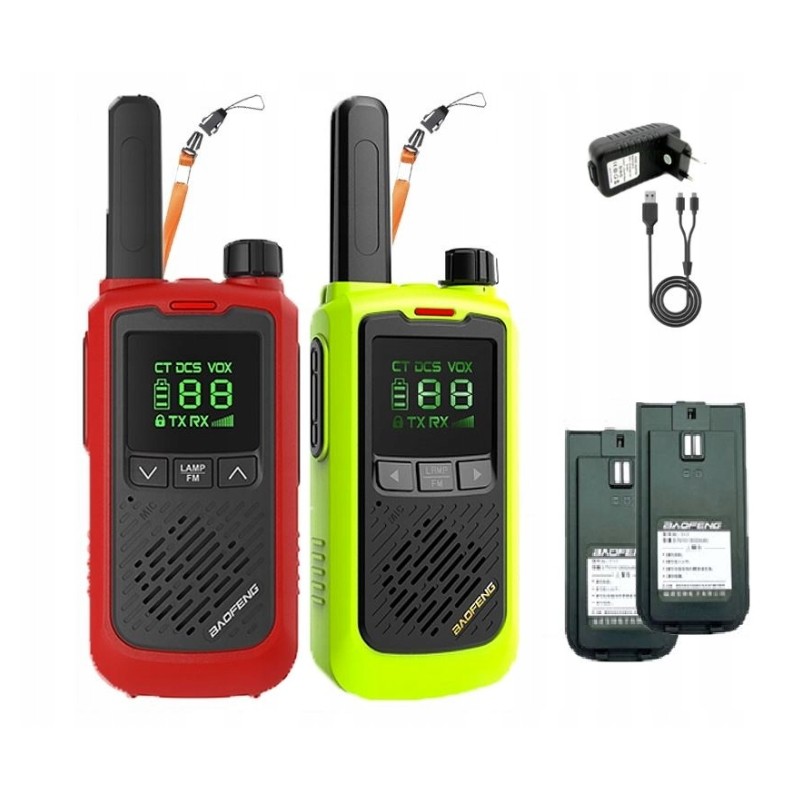 | Set contents | 2x Baofeng BF-T17 PMR radio, 2x Rechargeable battery 1x, Dual cable 2x, USB 1x, USB power adapter to work with cables, 2x Lanyard |