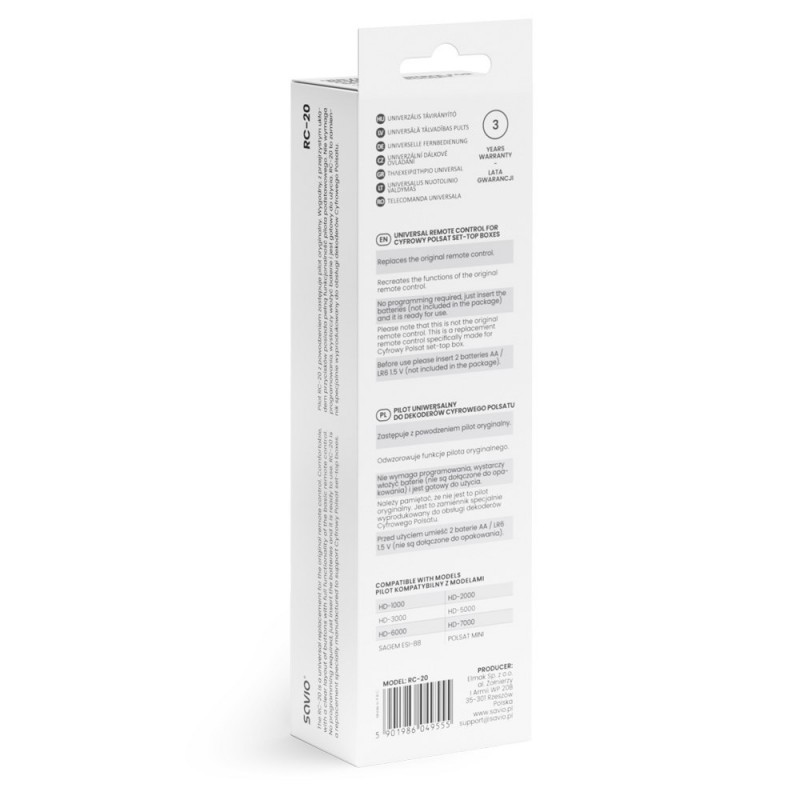 | Packaging content | Uniwersalny pilot SAVIO RC-20 Instrukcja obsługi |