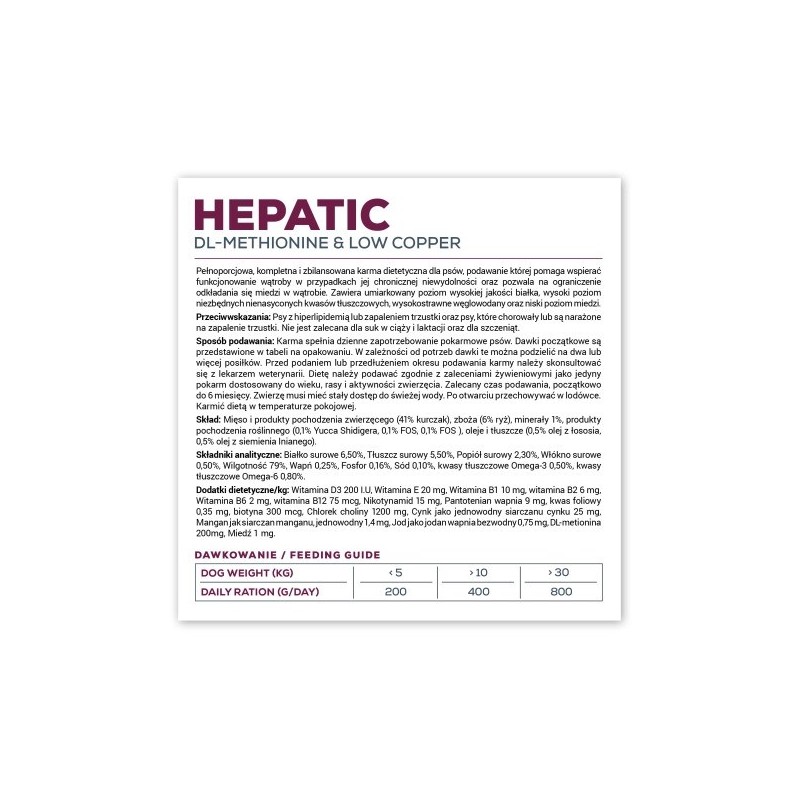 | Pet specific needs | Hepatic |