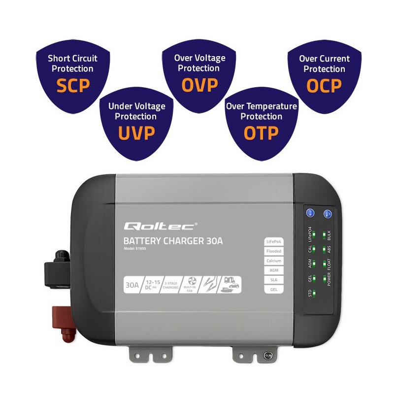 | Safety features | UVP, SCP, OVP, OTP, reverse polarity protection, protection against inverse polarity |