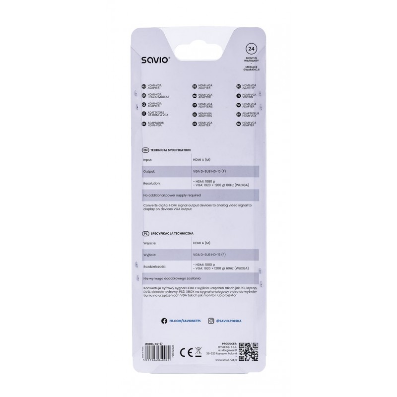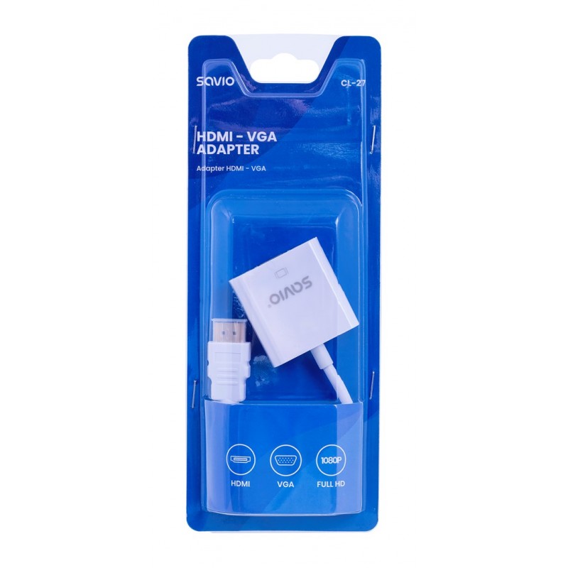 Savio CL-27 video cable adapter 0.2 m VGA (D-Sub) HDMI Type A (Standard) White