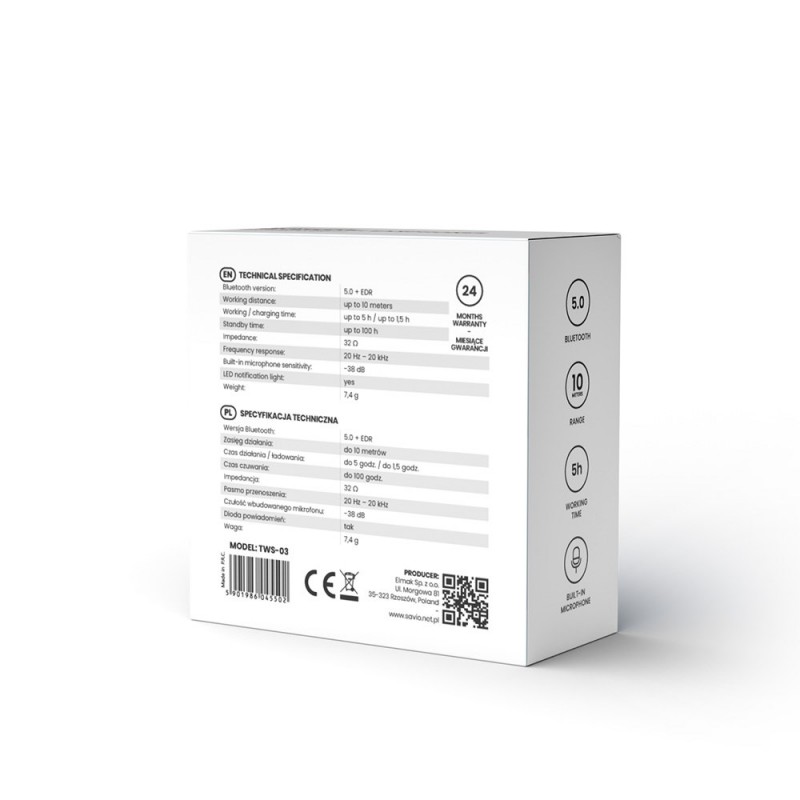 Savio TWS-03 Wireless Bluetooth Earphones, Black