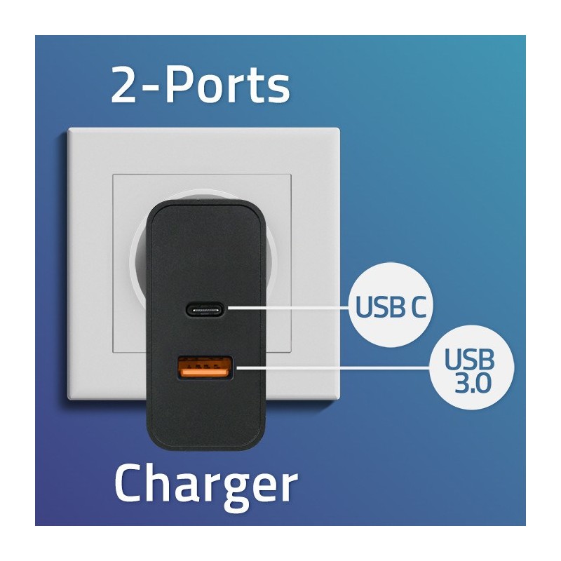 Qoltec 52380 Super Quick PD Charger | 1xUSB-C | 1xUSB | 65W | 5-20V | 1.5-3.25A | Black