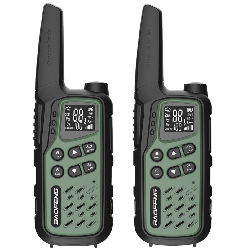 | Set contents | 2x PMR Radio Baofeng BF-T25,2x 3,7V 1400mAh battery, 2x PTT-1,1x AC adapter (EU) 230V/USB, 1x USB charging cable, 2x lanyard |