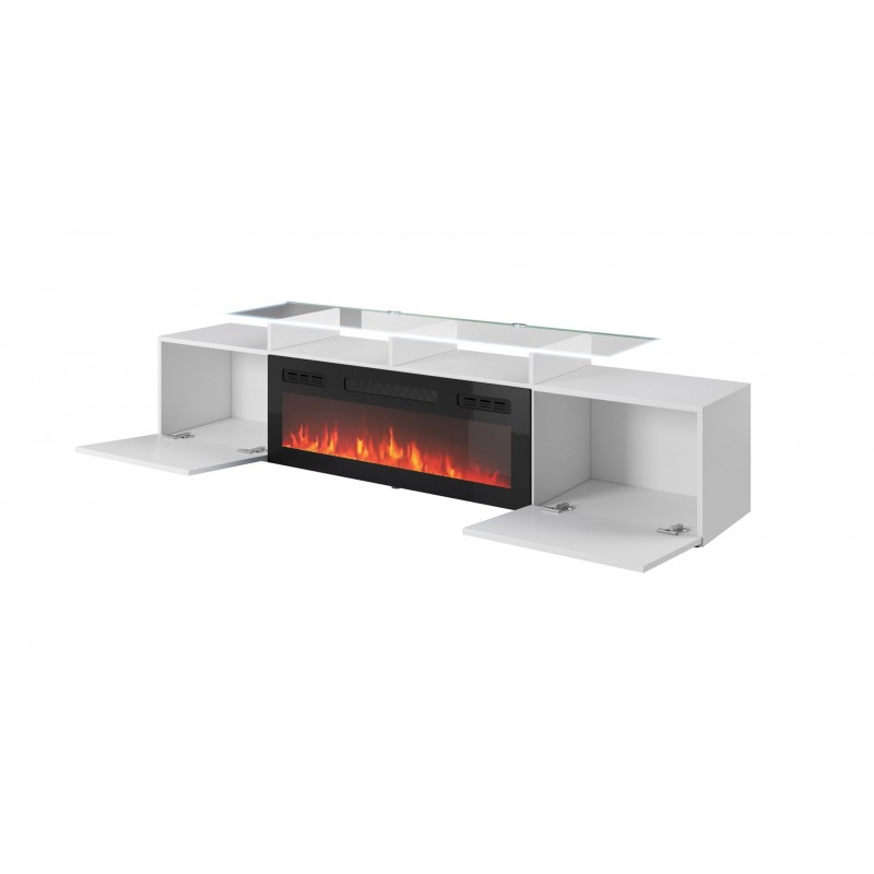RTV cabinet ROVA with electric fireplace 190x37x48 white/gloss white